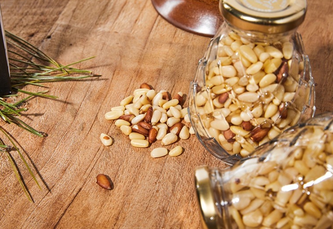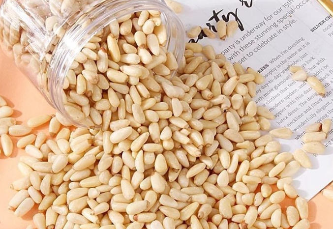 잣은 지방 함량이 높아 과다 섭취 시 체중 증가의 원인이 될 수 있으니 하루 권장량을 지켜주세요.
